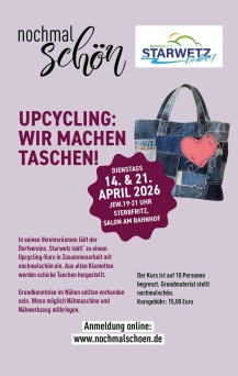 In seinen Vereinsräumen lädt der Dorfvereins 'Starwetz lebt!' zu einem Upcycling-Kurs in Zusammenarbeit mit nochmal schön ein. Aus alten Klamotten werden schicke Taschen hergestellt.