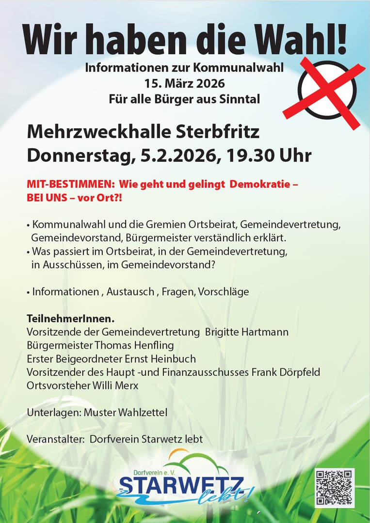 In einer öffentlichen Ortsbeiratssitzung wurde der Entwurf des DENKmal! Sterbfritz der Öffentlichkeit vorgestellt. Weitere Veranstaltungen folgten.