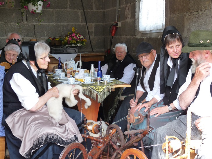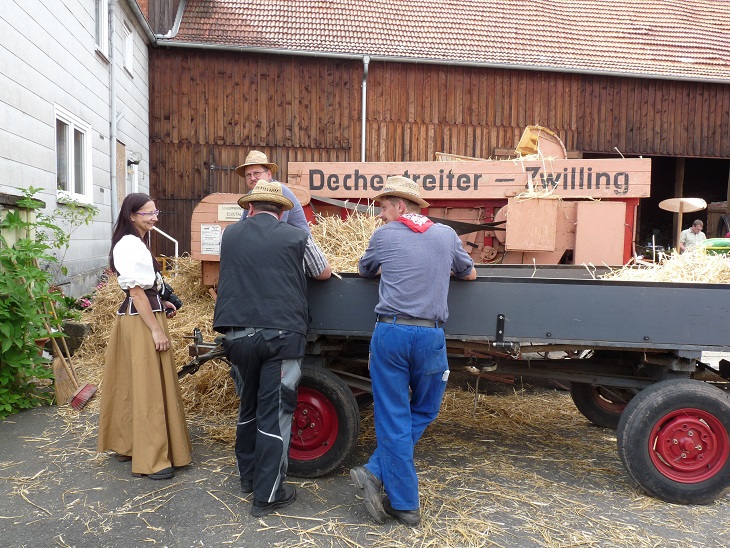 Auf dem stehenden Festzug stellen Sterbfritzer Vereine, Unternehmen, Institutionen sowie engagierte Bürger und Familien das Dorfleben von früher dar.