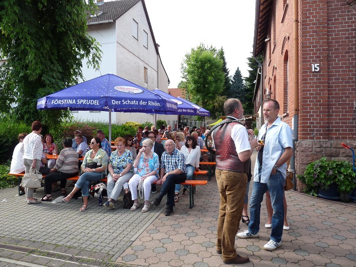 Anwesend sind zum Festauftakt auch eine Abordnung aus Stepfershausen bei Meiningen. Hier wurde im Jahr 2013 das 1150-jährige Bestehen gefeiert. Auch hier liegt eine Schenkungsurkunde auf den gleichlautenden Namen Starcfrideshuson den Altersberechnungen zu Grunde.