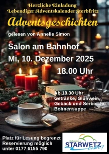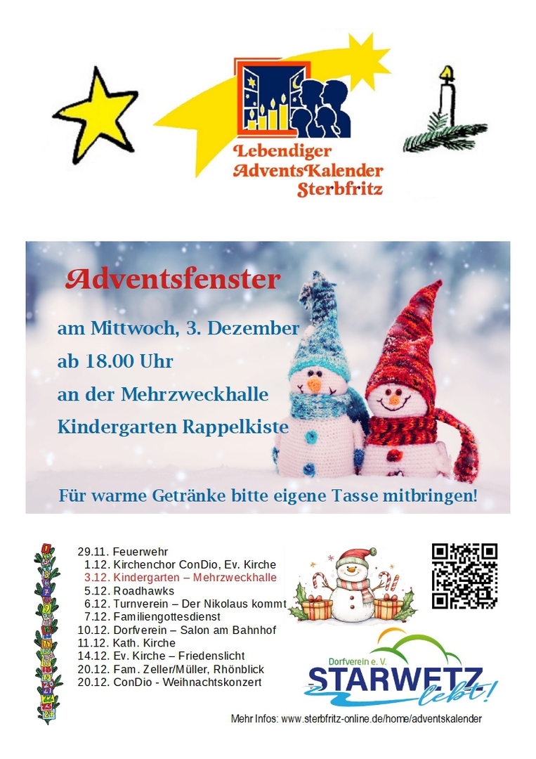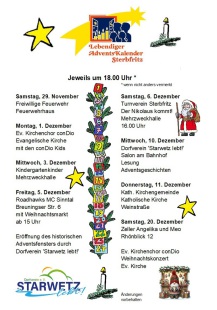 Der Dorfverein ‚Starwetz lebt!‘ lädt alle Mitbürger herzlich zum abendlichen Adventsfenster ein.