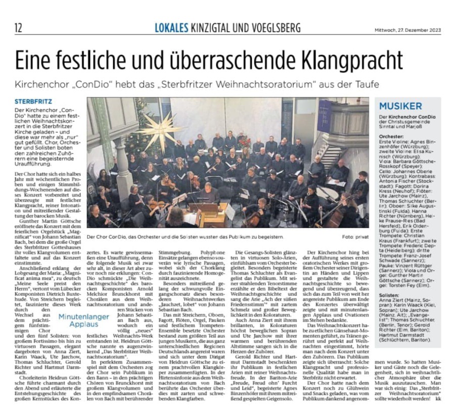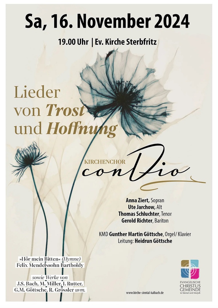 Weil Menschen Trost und Hoffnung brauchen, hat die Chorleiterin Heidrun Göttsche ihre Sängerinnen und Sänger für die besondere Konzert-Literatur gewonnen und in intensiver Vorbereitung einstudiert. Ebenfalls mitgewirkt haben die Sopranistin Daniela Weltecke, Ute Jarchow (Alt), Thomas Schluchter (Tenor), Gerold Richter (Bariton, Christiane Kessler (Klavier) und Gunther-Martin Göttsche an der Kirchenorgel.